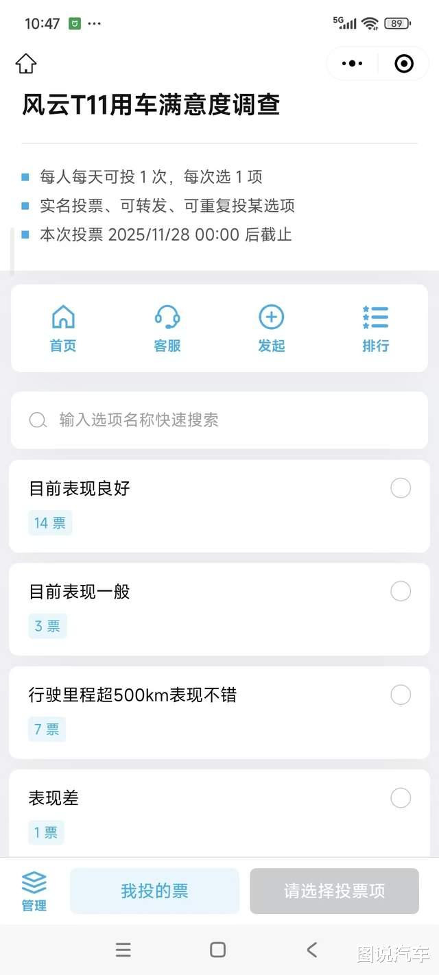 在发布了银河M9的满意度调查之后,风云T11的调查也结束了,还是那句话,很多车主不愿意登录投票,以及还有很多人的车没有交付,所以结果仅供参考,但是整体看,车主对风云T11的评价一致性还是高于差异性。