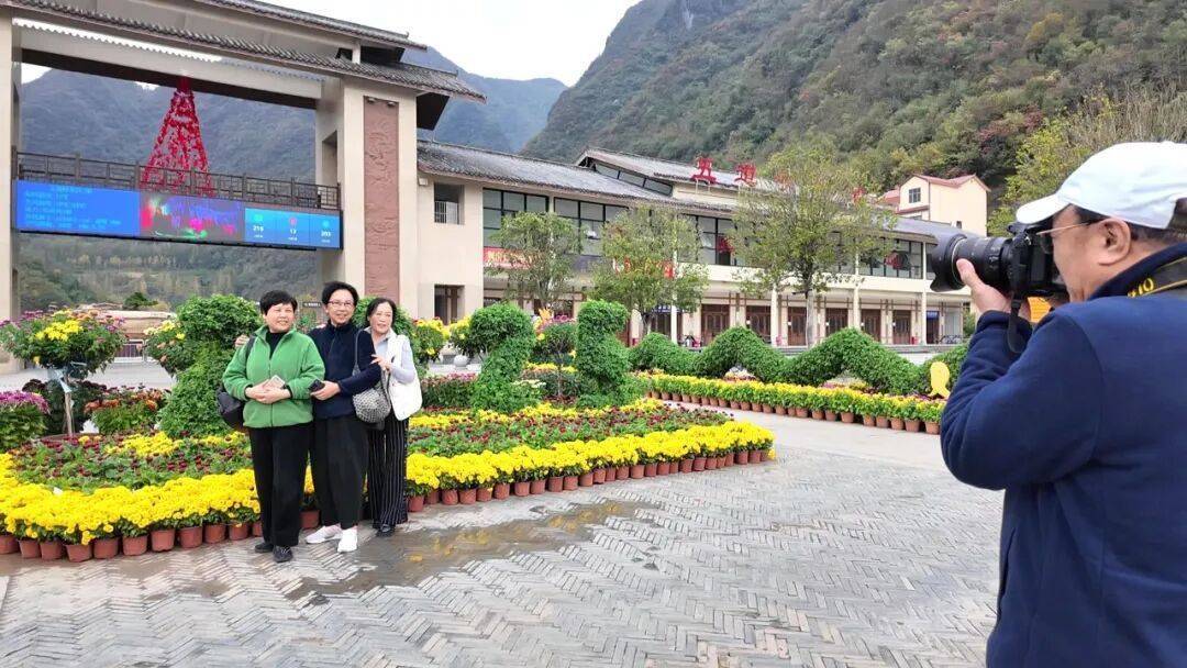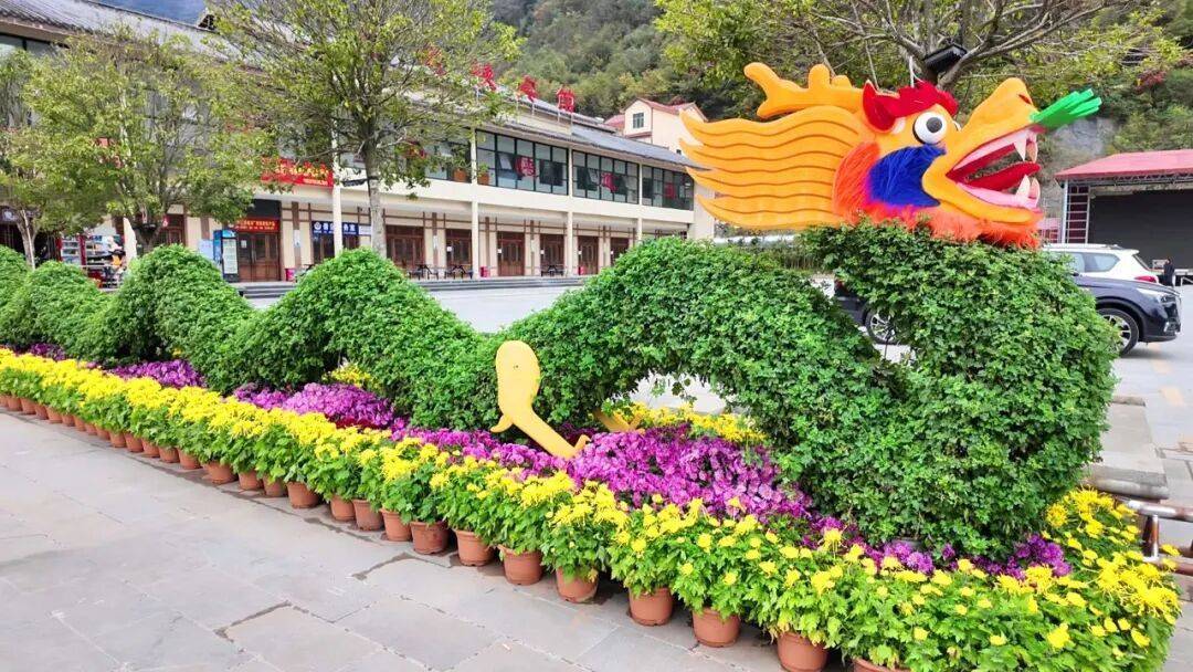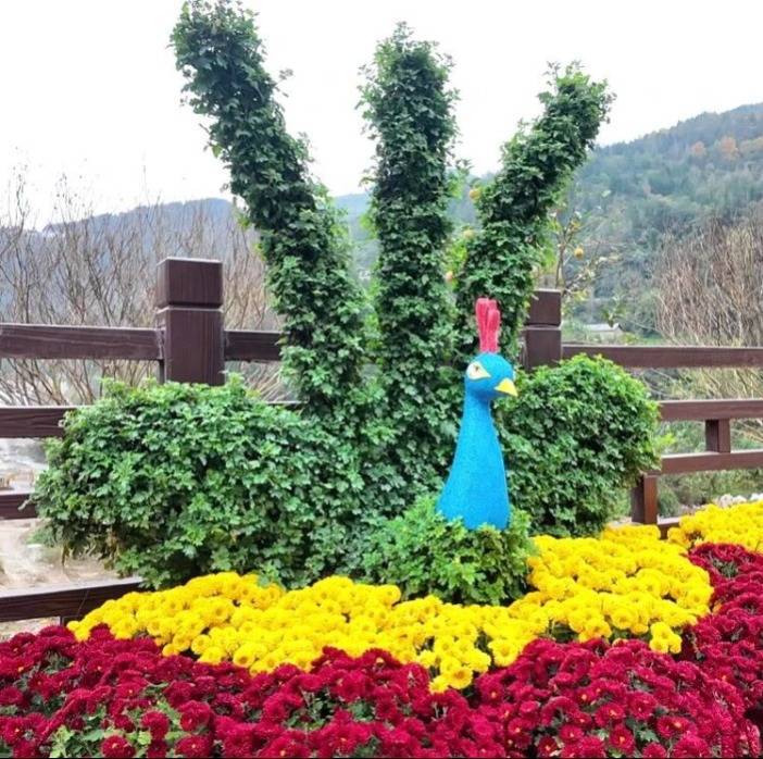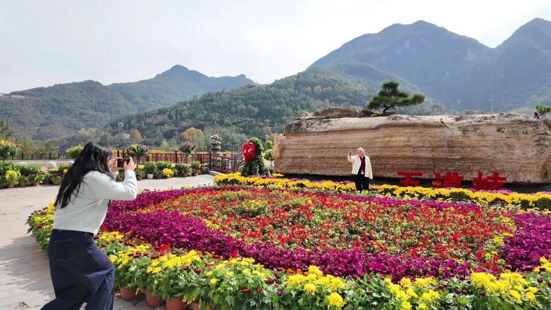 造型各异的菊花景观装点在步道两旁。粉的娇媚、红的炽烈、黄的明艳,“巨龙昂首”“孔雀开屏”“凤凰展翅”等一组组菊花扎景栩栩如生,与漫山秋叶互为映衬,构成一幅动人的峡谷秋景图。