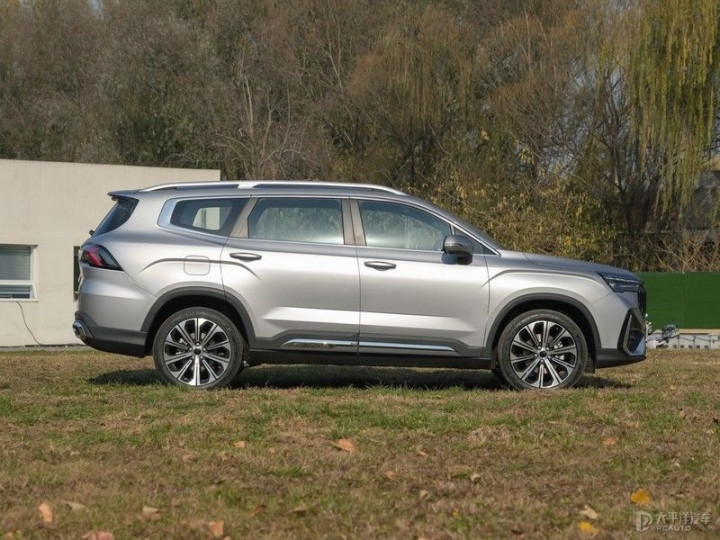 车身侧面延续了传统SUV四平八稳的造型风格,采用双腰线设计,配备20英寸多辐式轮毂,整车显得更为饱满。车身尺寸方面,第三代豪越L的长宽高分别为4865/1910/1770mm,轴距为2825mm,提供5/6/7座可选。