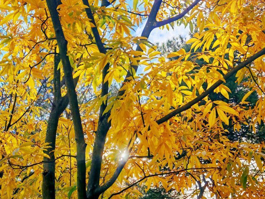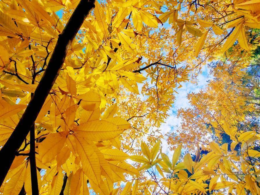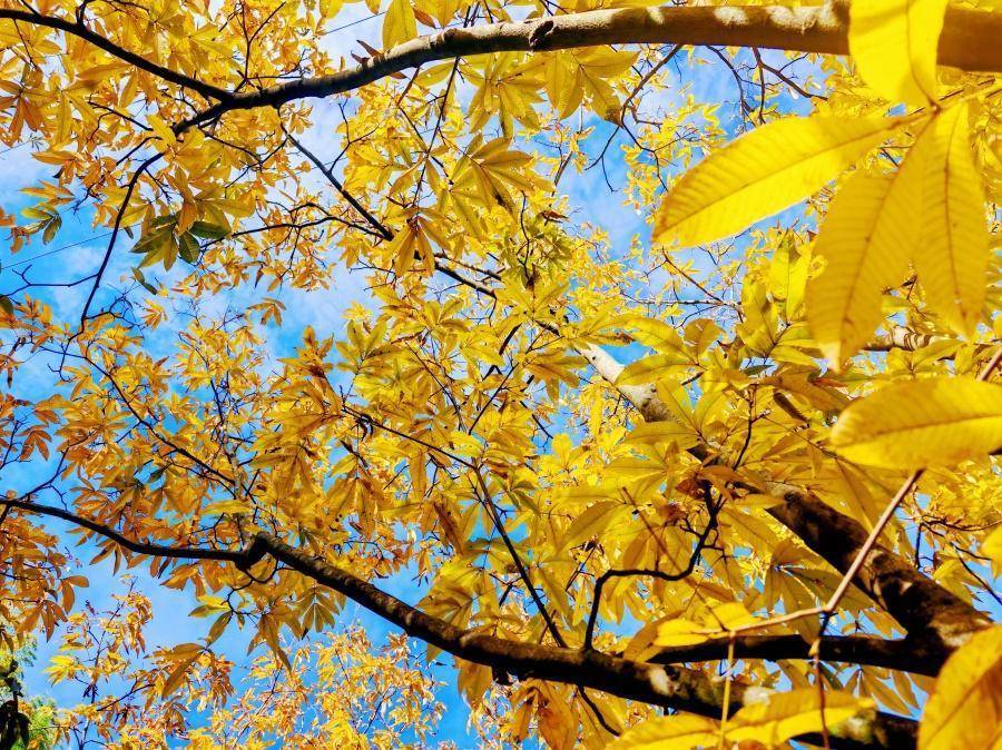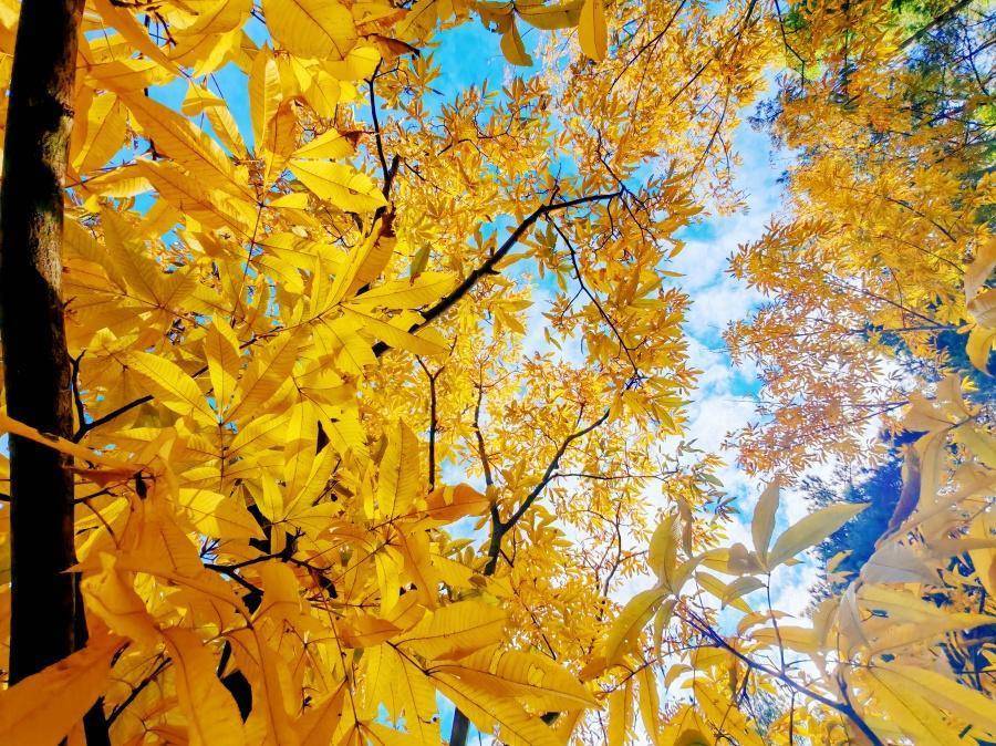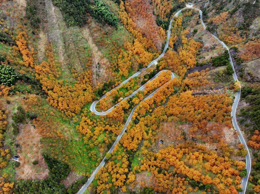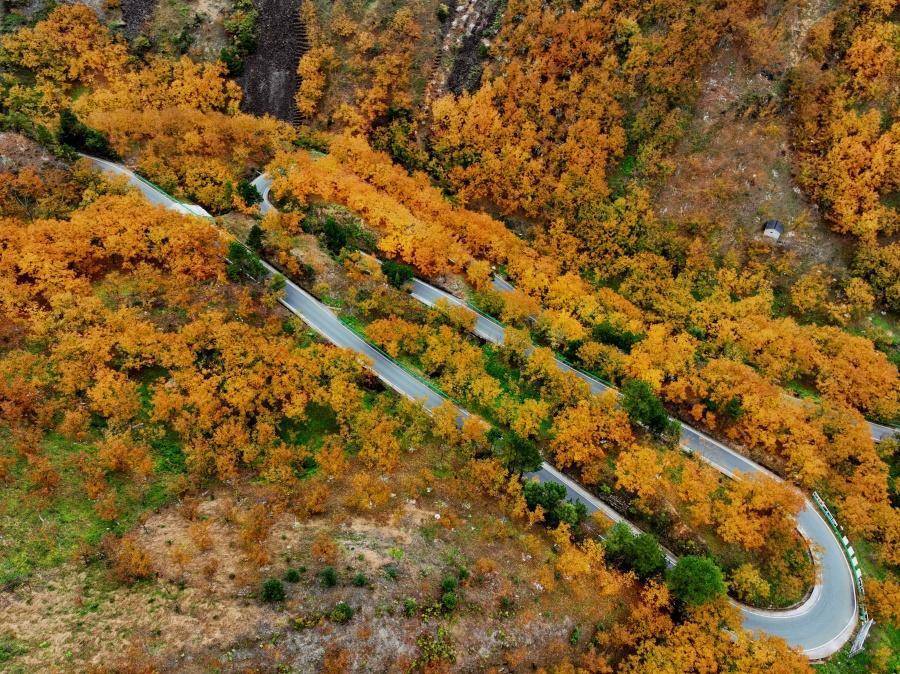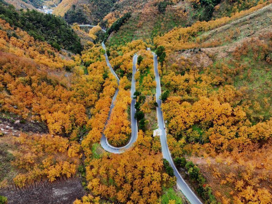 11月5日,秋色渐浓,安徽省宣城市绩溪县皖浙天路迎来最有诗意的季节,金黄色的万亩核桃林与漫山遍野的秋叶交相辉映,秋阳透过层层叠叠的黄金叶,在路面洒下斑驳的金红光影,像是画师刻意点染的笔触,每一寸都藏着深秋的温柔。行至皖浙天路赏叶最佳路段,路两旁的山核桃树早已换上鎏金盛装。金黄、浅黄、橙红,层层晕染,在阳光下流淌着温润的光泽。远山的黛绿、近树的鎏金、古村的素白、光影的金斑,交织成独属于这里的秋日盛景。(傅忠翛 许玉芬 文/图)